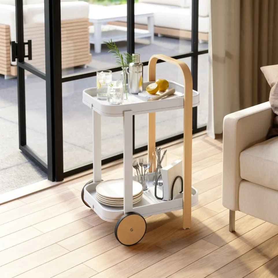 Entdecke die perfekte Mischung aus Stil und Funktionalität mit dem Servierwagen Table von Umbra. Gefertigt aus hochwertigem Stahl und mit einem eleganten, lackierten Finish versehen, bietet dieser Servierwagen nicht nur Stabilität, sondern auch ein modernes Design. Ob für deine nächste Feier oder als praktischer Begleiter im Alltag – dieser Wagen ist vielseitig einsetzbar. Nutze seine grosszügige Ablagefläche, um Getränke, Snacks oder Dekoration stilvoll zu präsentieren. Mit den leichtgängigen Rollen kannst du den Servierwagen mühelos von Raum zu Raum bewegen und dabei stets flexibel bleiben. Hole dir den Umbra Servierwagen Table für dein Zuhause.