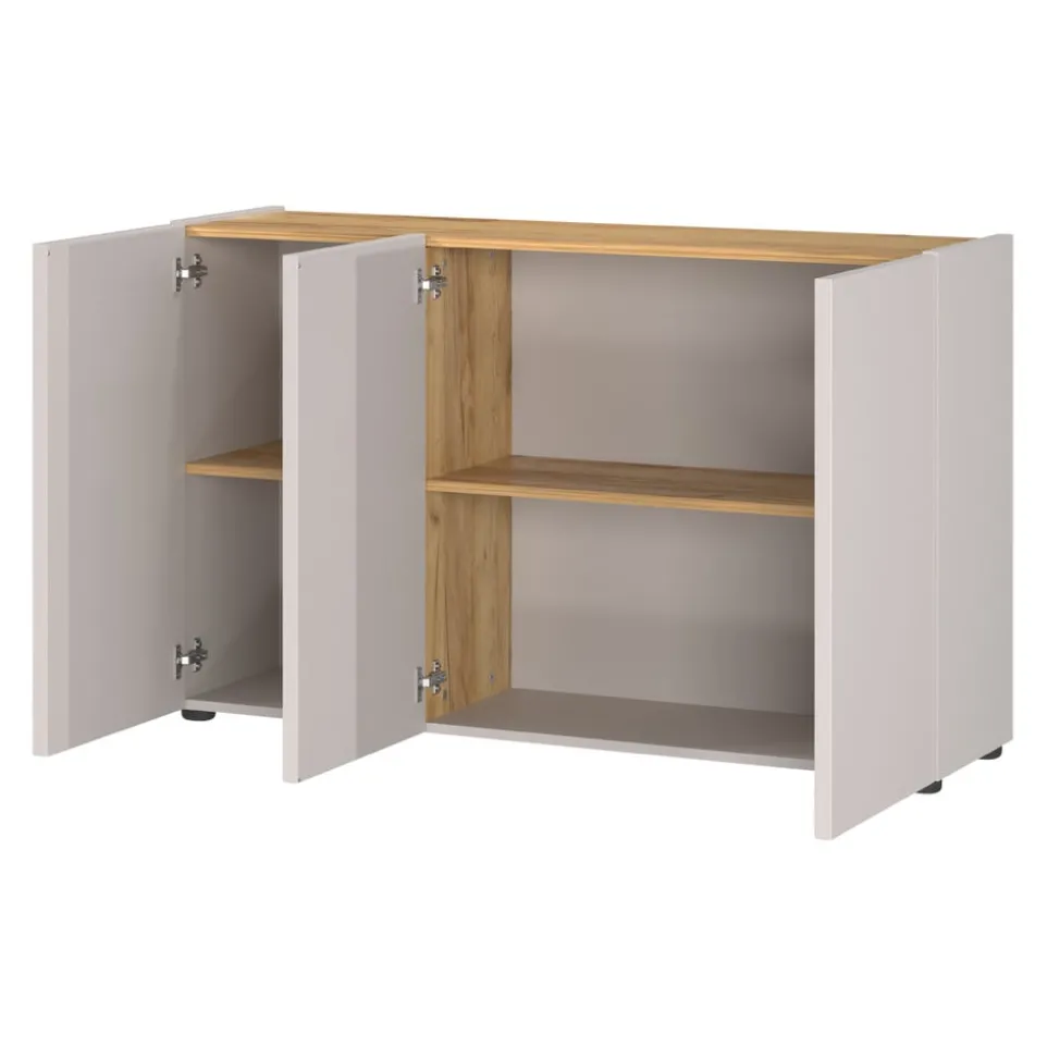 Mit seiner robusten ABS-Kante präsentiert sich das Sideboard Adrano von Novel als zuverlässiges Möbelstück. Aus hochwertigem Holzwerkstoff gefertigt, kombiniert es Spanplatte und MDF zu einer stabilen Einheit. Dieses Sideboard mit drei Türen bietet dir den nötigen Stauraum und fügt sich dank seiner klaren Linien mühelos in verschiedene Wohnumgebungen ein. Das Design von Adrano vereint Funktionalität mit zeitloser Eleganz, was es zu einem idealen Begleiter für dein Zuhause macht. Entdecke die vielseitige Einsetzbarkeit und den praktischen Nutzen dieses stilvollen Möbelstücks. Die Marke Novel steht für Qualität und durchdachte Gestaltung.