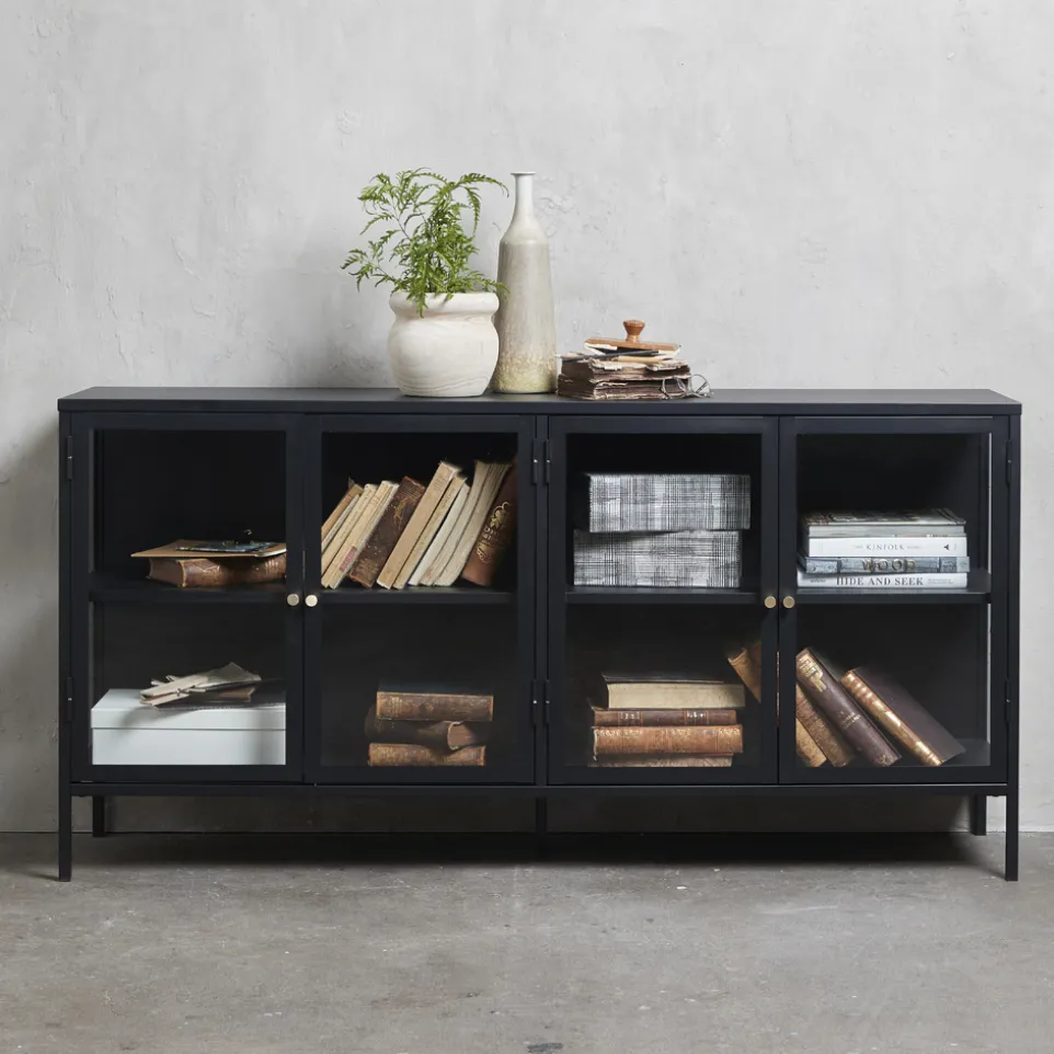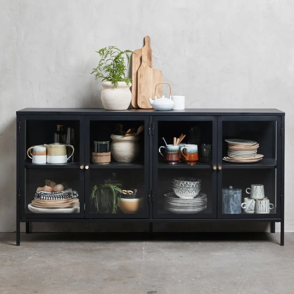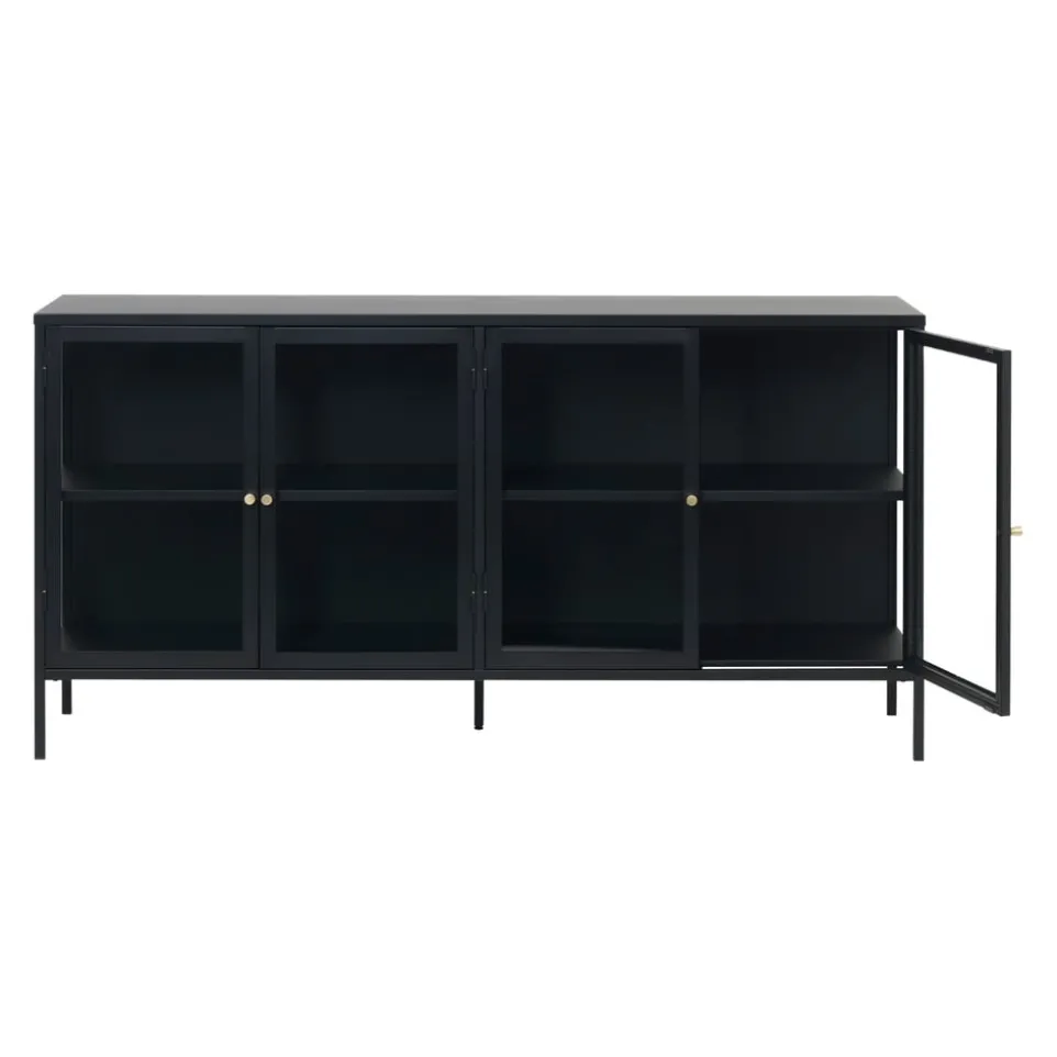 Mit dem Sideboard Carmel von Lomoco erhältst du ein stilvolles Möbelstück mit vier Glastüren, das deine Einrichtung aufwertet. Das elegante Design kombiniert Glas und Metall, was dem Sideboard eine moderne und zugleich zeitlose Optik verleiht. Die vier Glastüren bieten nicht nur reichlich Stauraum, sondern setzen auch deine Lieblingsstücke gekonnt in Szene. Ob im Wohnzimmer, Esszimmer oder Flur – das Sideboard Carmel fügt sich harmonisch in jeden Raum ein und sorgt für Ordnung und Stil. Setze auf die Qualität und das Design von Lomoco und mache dein Zuhause noch schöner.