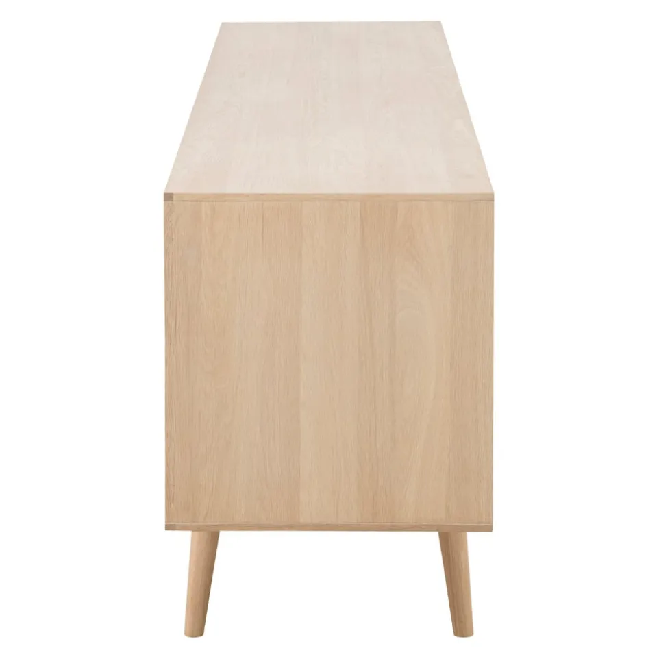 Das Sideboard Century von Lomoco kombiniert die natürliche Schönheit der Eiche mit modernem Design. Die Schiebetüren und fünf Schubladen bieten dir reichlich Stauraum und Funktionalität. Gefertigt aus hochwertigem Holzwerkstoff und furniert mit edler Eiche, überzeugt dieses Sideboard durch seine Langlebigkeit und zeitlose Eleganz. Die klare Linienführung und das minimalistische Design passen perfekt in jedes Wohnambiente. Mit dem Sideboard Century bringst du nicht nur Ordnung in dein Zuhause, sondern setzt auch stilvolle Akzente. Ideal für das Wohnzimmer, Esszimmer oder den Flur – ein Möbelstück, das vielseitig einsetzbar ist.
