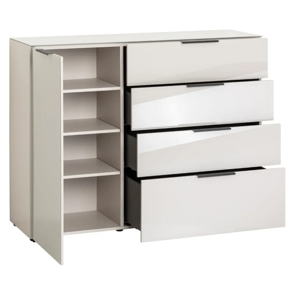 Mit der Türdämpfung und dem Selbsteinzug bietet das Sideboard Diana von Johann Jakob höchsten Komfort im Alltag. Es verfügt über vier geräumige Schubladen und eine Tür. Das Sideboard besteht aus hochwertiger Spanplatte und die Fronten sind mit elegantem Glas versehen. Kunststoffgleiter sorgen für einen sicheren Stand und die montierbare Kippsicherung erhöht die Sicherheit. Das Sideboard Diana ist die perfekte Lösung, um Ordnung und Stil in dein Zuhause zu bringen. Die Kombination aus Holzwerkstoff und Glas verleiht diesem Kastenmöbel eine ansprechende Optik und Funktionalität.