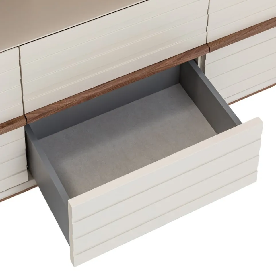 Das Sideboard Eros bietet dir mit seinen zwei Schubladen und zwei Türen aus hochwertigem MDF vielseitigen Stauraum. Hergestellt aus robustem Holzwerkstoff, überzeugt es durch seine zeitlose Eleganz und Funktionalität. Die glatten Fronten verleihen dem Möbelstück ein modernes Erscheinungsbild, das sich harmonisch in verschiedene Wohnstile einfügt. Ob im Wohnzimmer, Esszimmer oder Flur – das Sideboard Eros sorgt für Ordnung und Stil in deinem Zuhause. Entdecke die vielfältigen Einsatzmöglichkeiten dieses praktischen Möbelstücks und ergänze deinen Wohnbereich mit einem Sideboard, das durch Qualität und Design besticht.