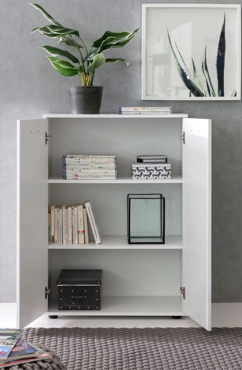 Mit seinen zwei Türen bietet das Sideboard Weiss von MID.YOU nicht nur praktischen Stauraum, sondern überzeugt auch durch sein zeitloses Design. Gefertigt aus hochwertiger Spanplatte, fügt sich dieses Sideboard nahtlos in jede Wohnumgebung ein. Die klaren Linien und das schlichte Design machen es zu einem vielseitigen Möbelstück, das sowohl im Wohnzimmer als auch im Essbereich seinen Platz findet. Ob für Geschirr, Bücher oder Dekoration – das Sideboard Weiss bietet ausreichend Platz und sorgt gleichzeitig für Ordnung und Stil. Entdecke die vielseitigen Einsatzmöglichkeiten dieses eleganten Kastenmöbels.