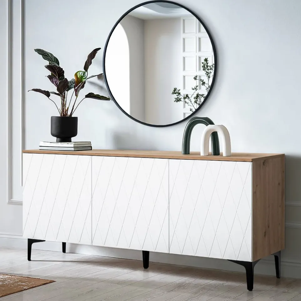 Ein Highlight für jedes Zuhause ist das Sideboard Westside von BYYU. Dieses elegante Möbelstück aus hochwertigem Holzwerkstoff bereichert jeden Raum. Die Kunststoffgleiter sorgen für eine einfache Handhabung und schützen deinen Boden vor Kratzern. Das Sideboard bietet viel Stauraum für deine persönlichen Gegenstände und ist gleichzeitig ein stilvoller Blickfang. Perfekt für das Wohnzimmer oder den Flur, fügt sich das Sideboard Westside nahtlos in jede Einrichtung ein. Entdecke die Kombination aus Funktionalität und Design mit diesem vielseitigen Möbelstück. Verleihe deinem Zuhause einen Hauch von Eleganz und Komfort.