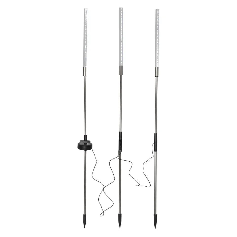 Solarleuchte BUBBLY nutzt die Kraft der Sonne, um Romantik herbeizuzaubern. Platzieren Sie die Gartendekoration dort, wo die Sonne tagsüber das Panel erreichen kann, um die mitgelieferten Batterien aufzuladen. Bei Dunkelheit aktiviert der Dämmerungssensor das Licht. Die 3 Stifte sind mit einem Kabel verbunden; die Gesamtlänge beträgt ca. 160 cm (Abstand zwischen den Stiften: 90 und 70 cm.).