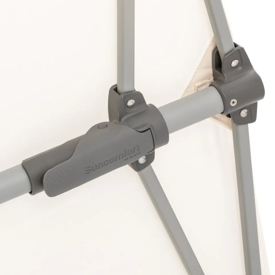 Mit dem Sonnenschirm Flex Roof von Suncomfort by Glatz geniesst du optimalen Schutz vor der Sonne. Sein rechteckiges Design ist nicht nur ästhetisch, sondern auch funktional, da das Schirmdach in alle Richtungen kipp-, schwenk- und schiebbar ist, ohne dass du dein Mobiliar verstellen musst. Dank der 360° Drehbarkeit und der Höhenverstellbarkeit passt er sich flexibel deinen Bedürfnissen an. Das Knickgelenk ermöglicht zusätzlichen Komfort und Flexibilität. Langlebig und UV-beständig, schützt er zuverlässig vor schädlichen Strahlen. Eine mitgelieferte Schutzhülle sorgt für zusätzlichen Schutz und Langlebigkeit des Materials.
