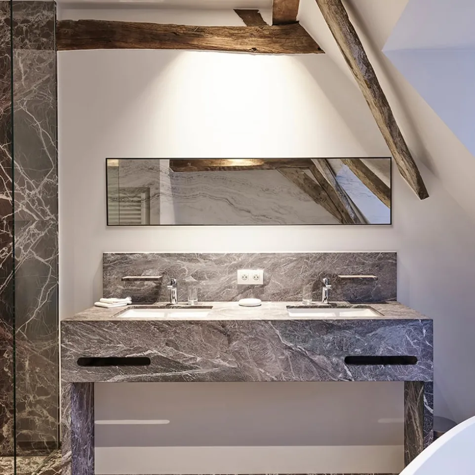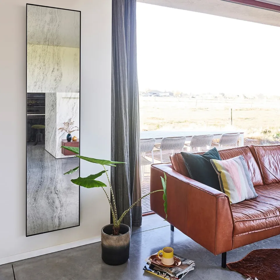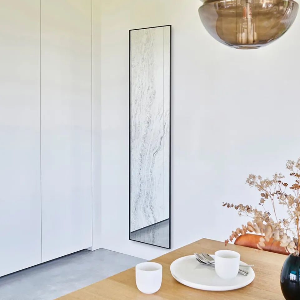 Spiegel TRAVERTIN zeichnet sich aus durch die optisch eingearbeitete Struktur eines Sedimentgesteins. Designt von Esther Everaert, verleihen die feinen Linien und Kalksteinwirbel dem Spiegel einen besonderen Charakter. Der schlanke Metallrahmen umfasst das edle Bild und kreiert damit ein Kunstwerk. Mit Spiegel TRAVERTIN erhalten Sie ein exklusives Schmuckstück, das Sie sowohl horizontal als auch vertikal aufhängen können.
