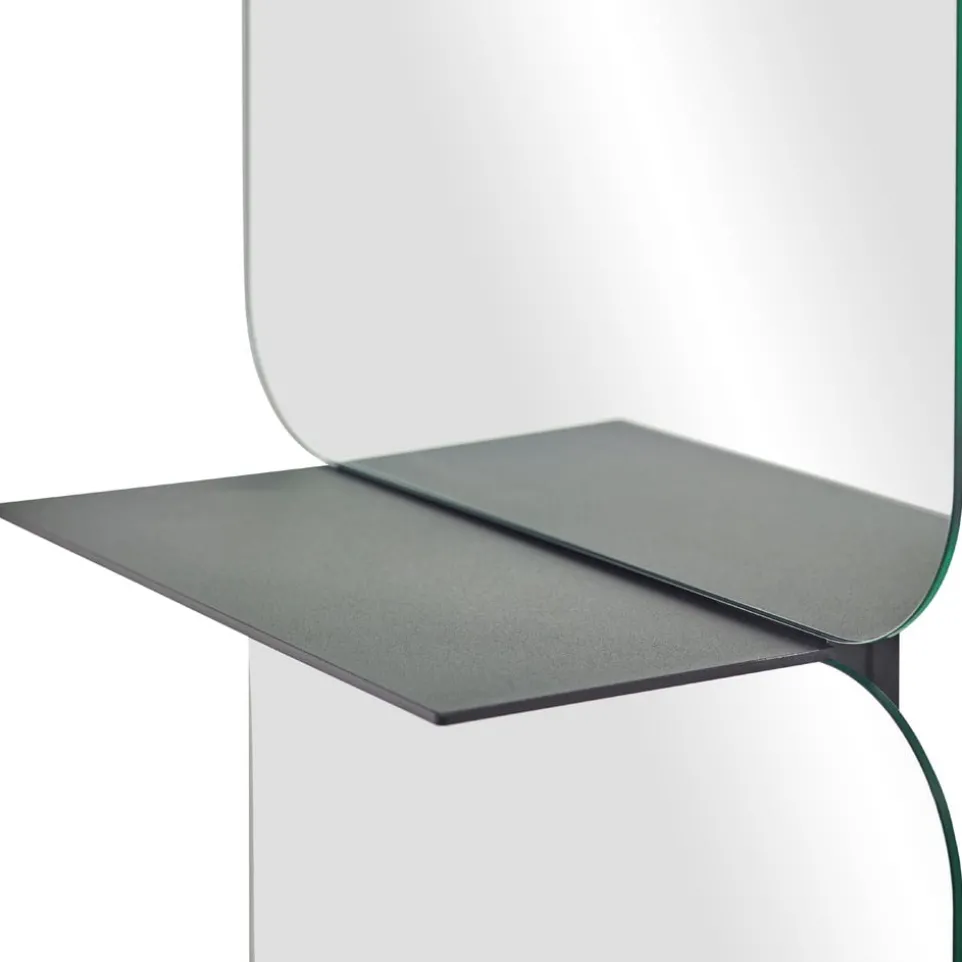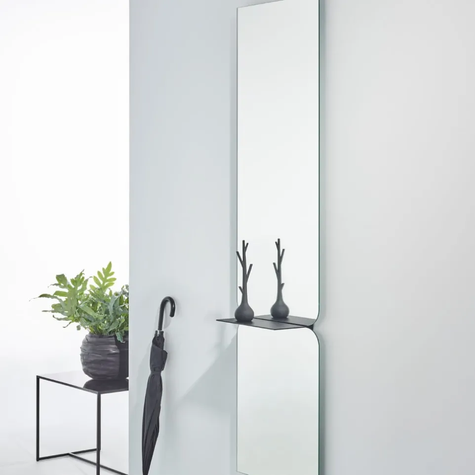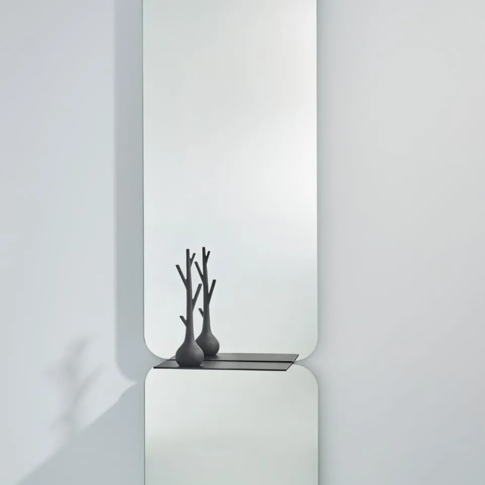 Wandspiegel TAILLE von Deknudt Mirrors ist ein eleganter Spiegel in puristischem Design. Die Ablagefläche besteht aus pulverbeschichtetem Aluminium. Die optische Einschnürung des Spiegels durch die Ablage verleiht dem edlen Designobjekt das gewisse Etwas und Ihrem Interieur die perfekte Krönung.