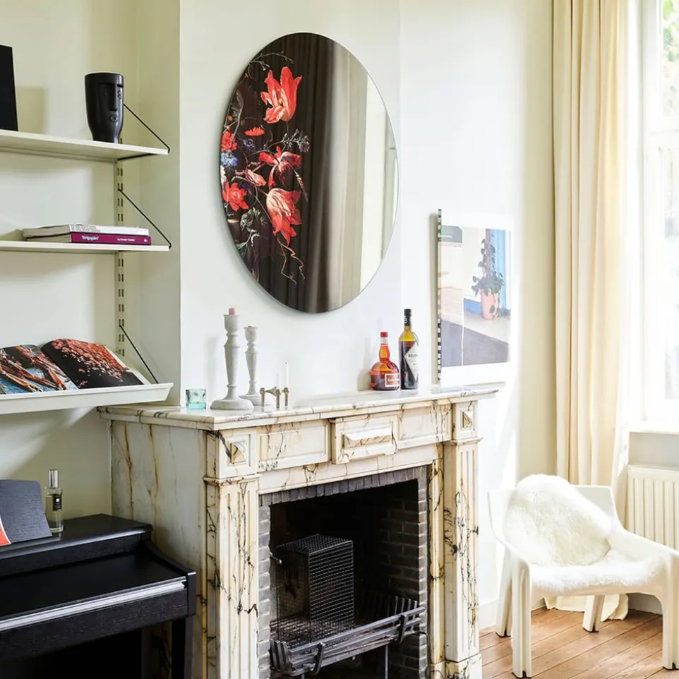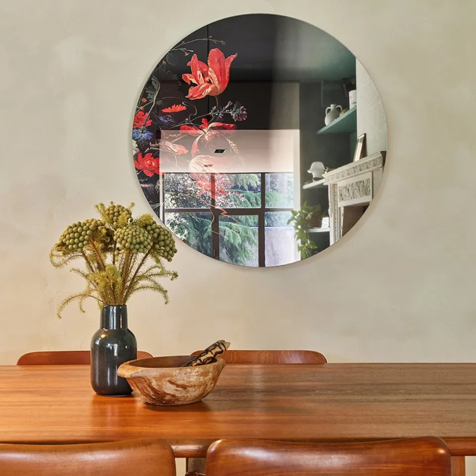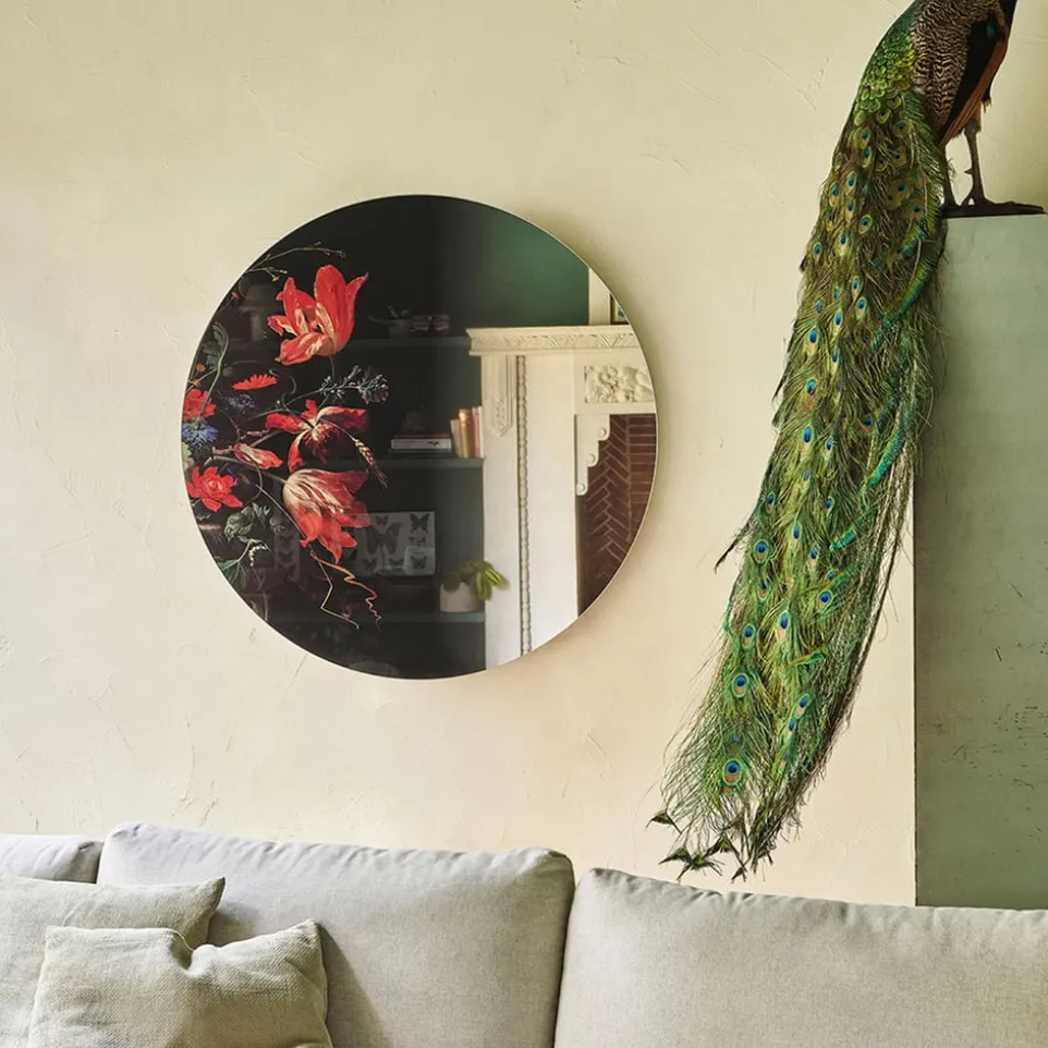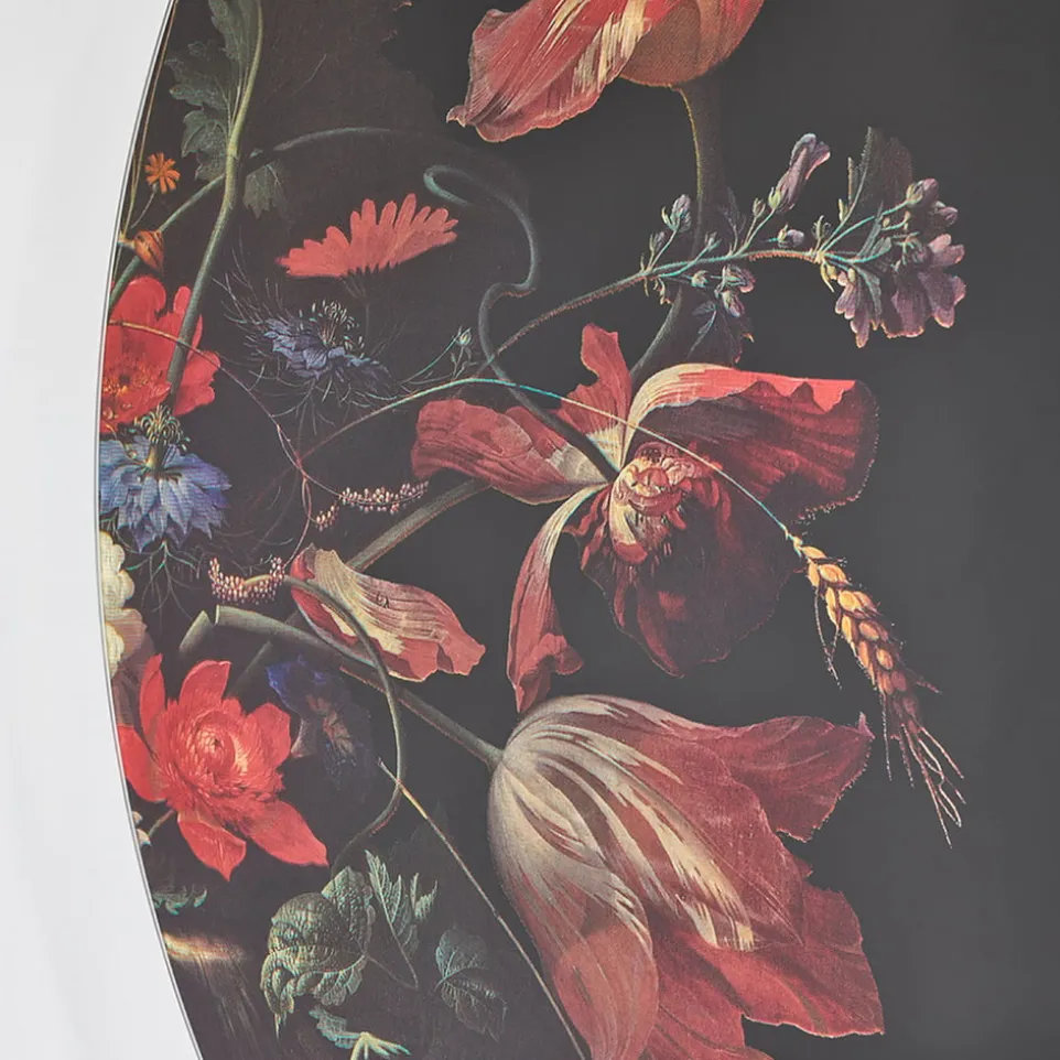 Spiegel MUSEO, entworfen von der niederländischen Designerin Julia Dozsa, ist ein rundum romantisches und kunstvolles Schmuckstück. Die filigrane Kunst ist angelehnt an das Original-Stilleben von Abraham Mignon aus dem 17. Jahrhundert. Die Kombination der wunderschönen Tulpen- und Irisblüten mit dem dunklen Hintergrund zieht jeden in seinen Bann. Ein besonders ästhetisches Accessoire für Ihr Interieur.