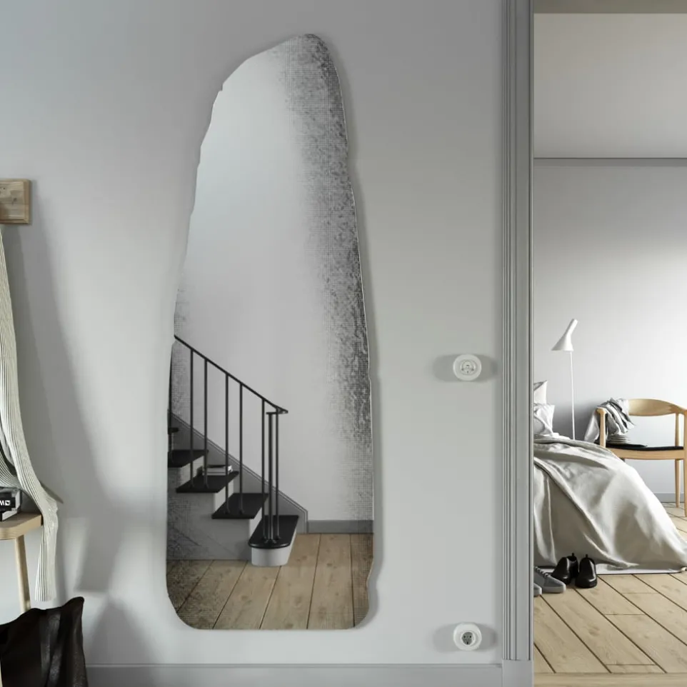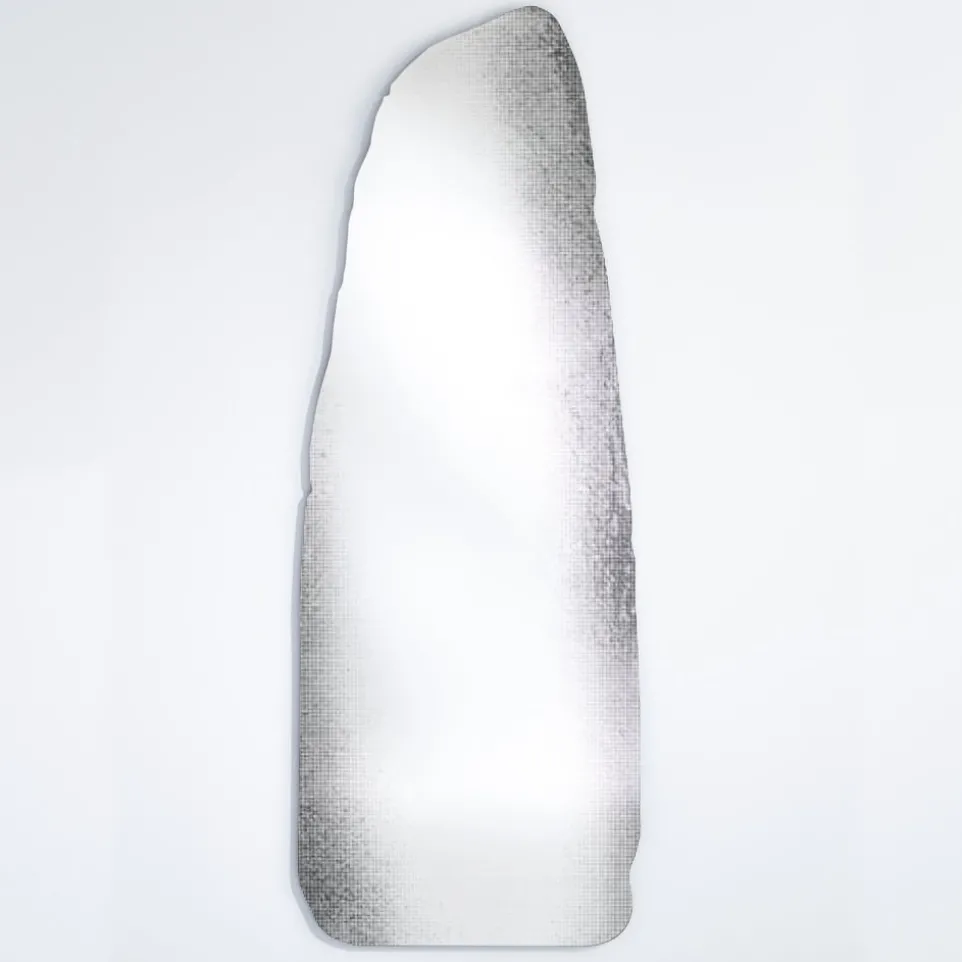 Designspiegel ROCCA der belgischen Marke Deknudt Mirrors ist ein dekorativer Fels in Ihrem Zuhause. Die Form ist inspiriert von einem Menhir in Nordfrankreich. Dank eines Rastermusters entstehen Tiefe und Schatten, welche plastische Effekte erzeugen und Ihrem Interieur ein stilvolles Ambiente.