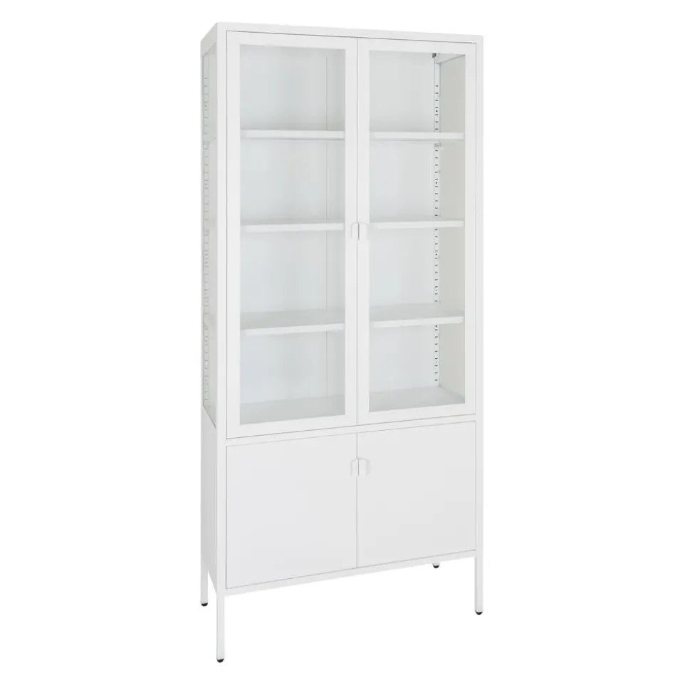 Mit vier eleganten Türen bietet die Vitrine Brisbane von Johann Jakob viel Stauraum für deine liebsten Sammlerstücke. Gefertigt aus hochwertigem Metall, schafft sie eine moderne und zugleich robuste Präsentationsmöglichkeit. Die Masse von 80x35x180 cm machen sie zu einem idealen Möbelstück für verschiedene Raumgrössen, passend für dein Wohnzimmer oder Büro. Ob du Bücher, Geschirr oder besondere Erinnerungsstücke unterbringen möchtest, die Vitrine Brisbane sorgt für eine stilvolle Aufbewahrung. Die klare Linienführung und das zeitlose Design fügen sich harmonisch in unterschiedliche Einrichtungsstile ein, ohne aufdringlich zu wirken. Entdecke die vielseitigen Möglichkeiten dieser edlen Vitrine.