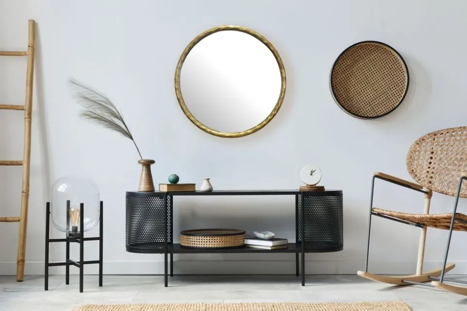 Mit einem Durchmesser von rund 60 cm zieht der Dekospiegel von MID.YOU alle Blicke auf sich. Der Wandspiegel Metall bringt Eleganz in jeden Raum und überzeugt durch sein schlichtes, aber edles Design. Gefertigt aus hochwertigem Metall, bietet er nicht nur Ästhetik, sondern auch Stabilität und Langlebigkeit. Ob im Flur, Schlafzimmer oder Wohnzimmer, dieser Spiegel ergänzt verschiedenste Einrichtungsstile und verleiht deinem Zuhause das gewisse Extra. Ein funktionales und stilvolles Accessoire, das sowohl optisch als auch praktisch überzeugt. Lasse deine Räume grösser und heller wirken und setze gezielte Akzente mit diesem stilvollen Wandspiegel.