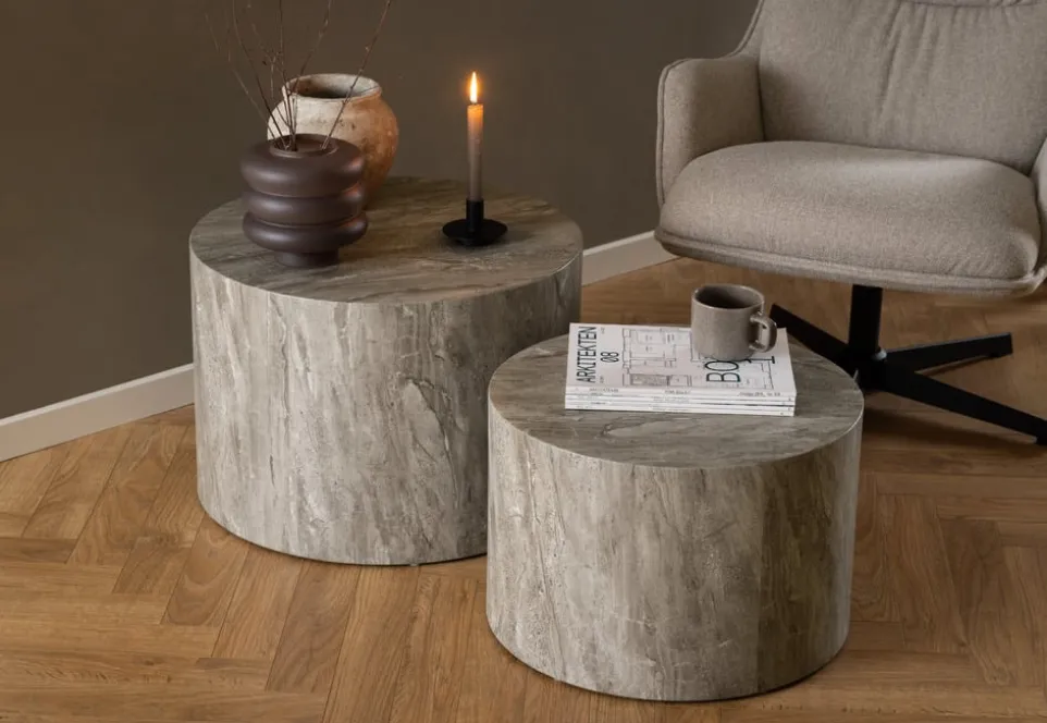 Der Zweisatztisch Dice von MID.YOU ist ein wahres Raumwunder. Die Kombination aus den Massen 50x50x33 und 58x58x40 bietet Flexibilität und Eleganz zugleich. Die runde Plattenform aus hochwertigem MDF-Holz verleiht deinem Wohnbereich eine stilvolle Note. Durch die robusten Kunststoffgleiter werden empfindliche Böden geschont. Ob als Couchtisch, Beistelltisch oder Dekorationselement, dieser Tisch fügt sich harmonisch in jede Umgebung ein. Die klare Linienführung und das funktionale Design machen den Zweisatztisch zu einem Must-have für dein Zuhause. Lass dich von der Marke MID.YOU inspirieren und gestalte deinen Wohnraum neu.