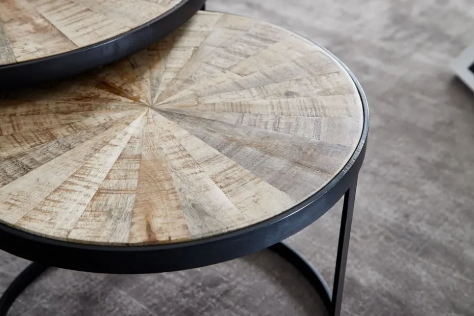 Tauche in die natürliche Ästhetik ein mit dem Zweisatztisch Mango von MID.YOU. Die Kombination aus einem grossen Tisch mit den Massen 60x60x40 cm und einem kleineren Tisch mit 45x45x35 cm bietet dir Flexibilität und Funktionalität. Beide Tische bestechen durch ihre runde Plattenform und sind aus hochwertigem Holz gefertigt. Diese Tische sind nicht nur stilvolle Ergänzungen für dein Zuhause, sondern auch praktische Helfer für den Alltag. Ob im Wohnzimmer oder im Büro, die Zweisatztische fügen sich harmonisch in verschiedene Raumkonzepte ein und setzen elegante Akzente.