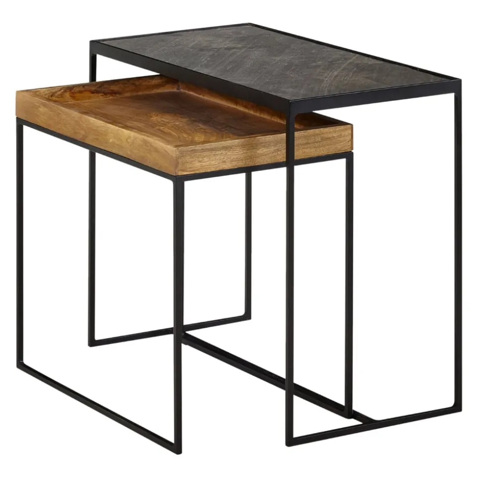 Verleihe deinem Wohnraum eine stilvolle Note mit dem Zweisatztisch Mango von MID.YOU. Die rechteckigen Tischplatten passen perfekt zusammen und bieten vielseitige Möglichkeiten der Dekoration. Der grössere Tisch misst 60x30x50 cm, während der kleinere Tisch mit 50x30x44 cm ideal darunter passt. Diese Kombination ist nicht nur praktisch, sondern auch ein echter Hingucker für dein Zuhause. Die schlichte Eleganz der Tische fügt sich harmonisch in jede Einrichtung ein und bietet Platz für deine wichtigsten Accessoires oder Dekorationen. Entdecke, wie der Zweisatztisch Mango deinen Raum aufwerten kann.